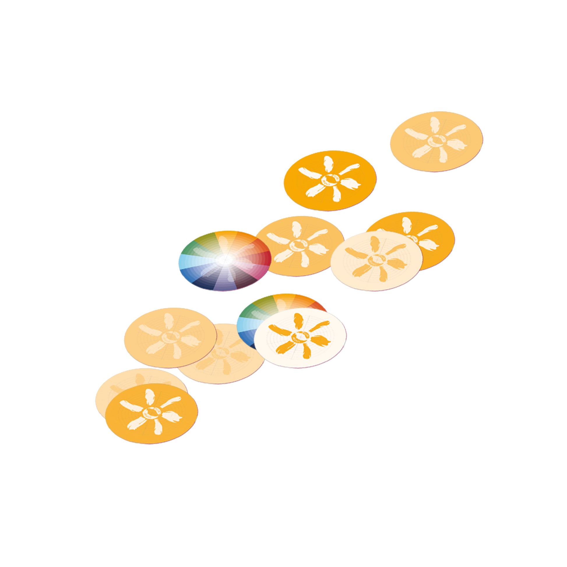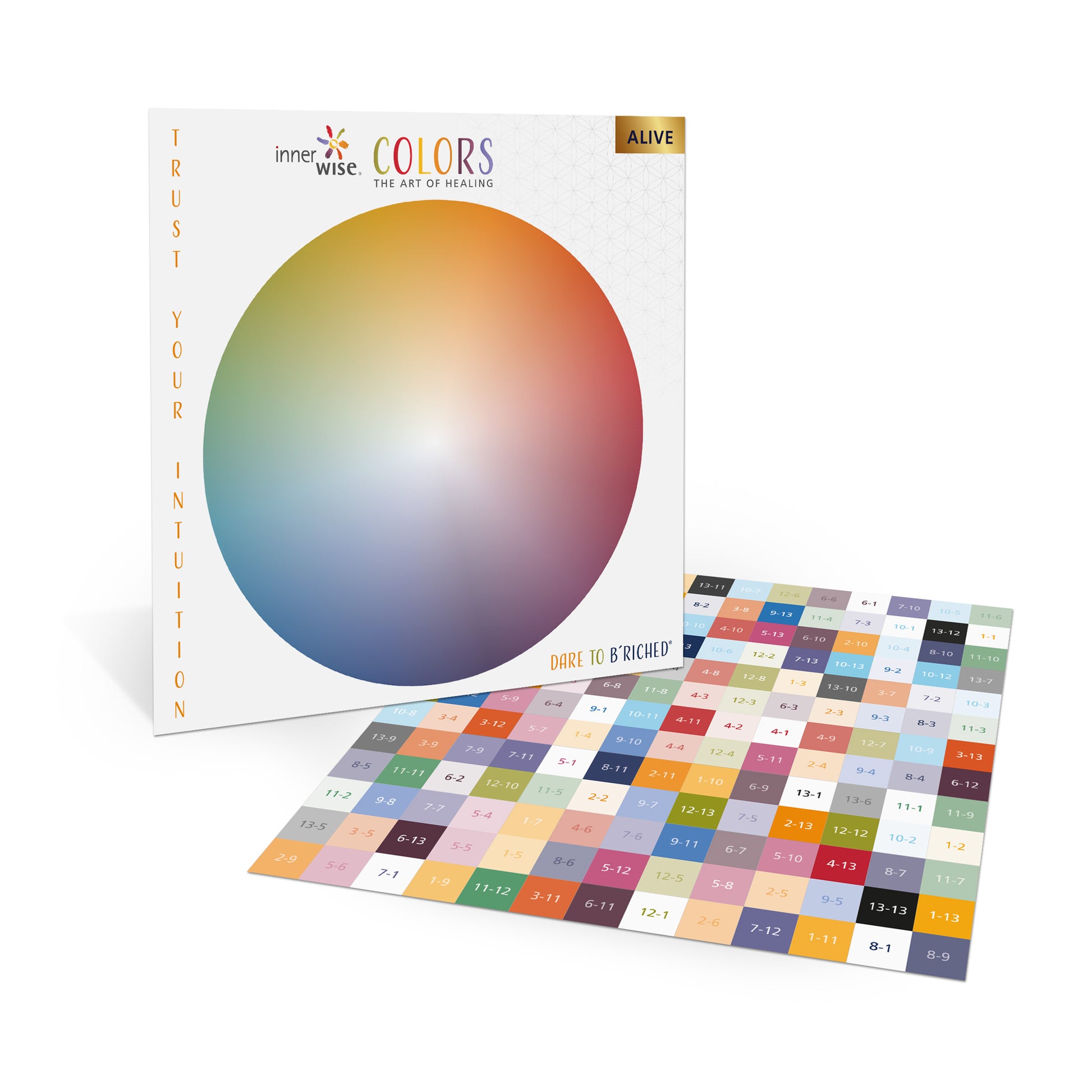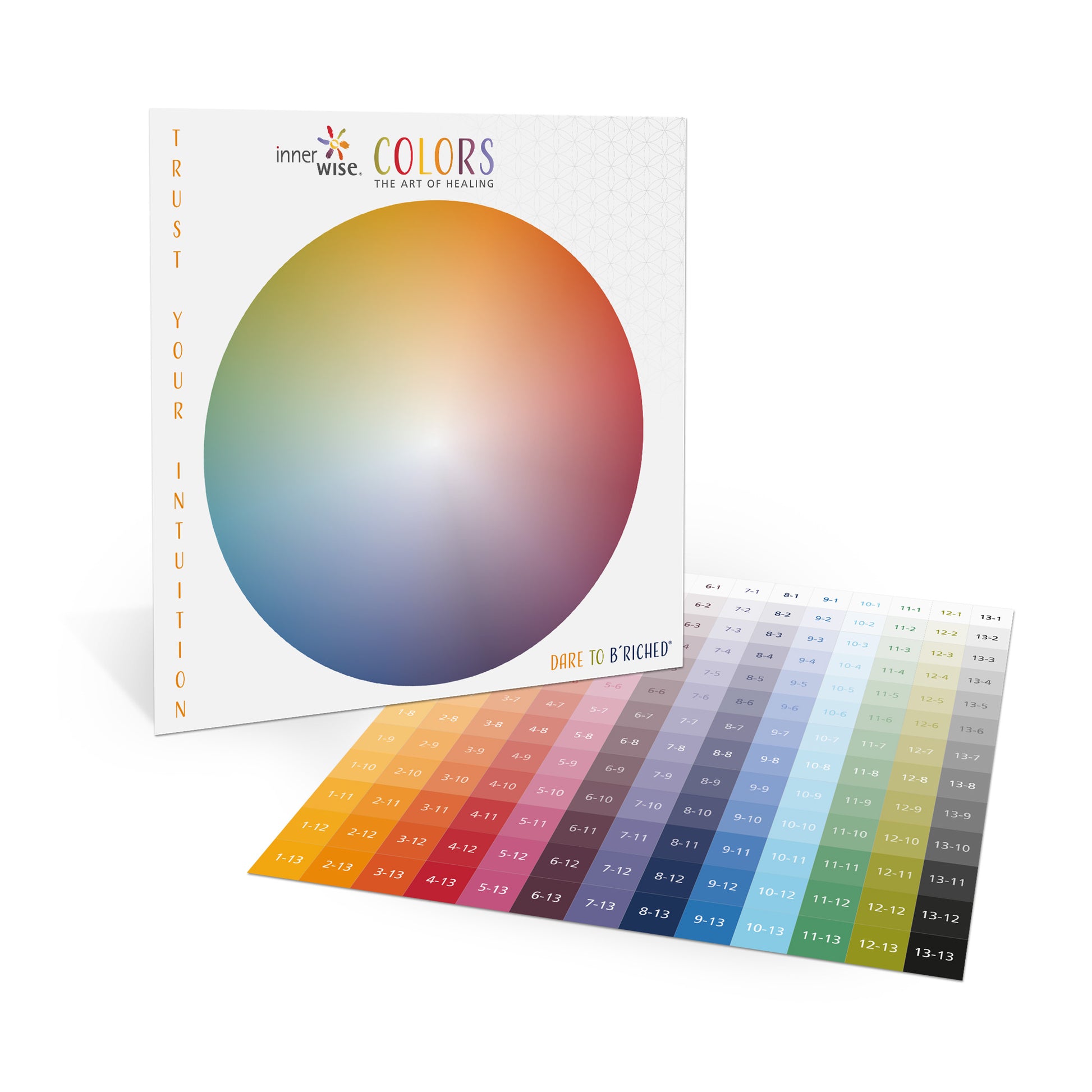 Das innerwise Heilsystem Colors auf einer Platte mit farblich chaotischer Anordnung der Farbabstufungen - für die, die ihrer Intuition frei Lauf lassen wollen bei der Auswahl.