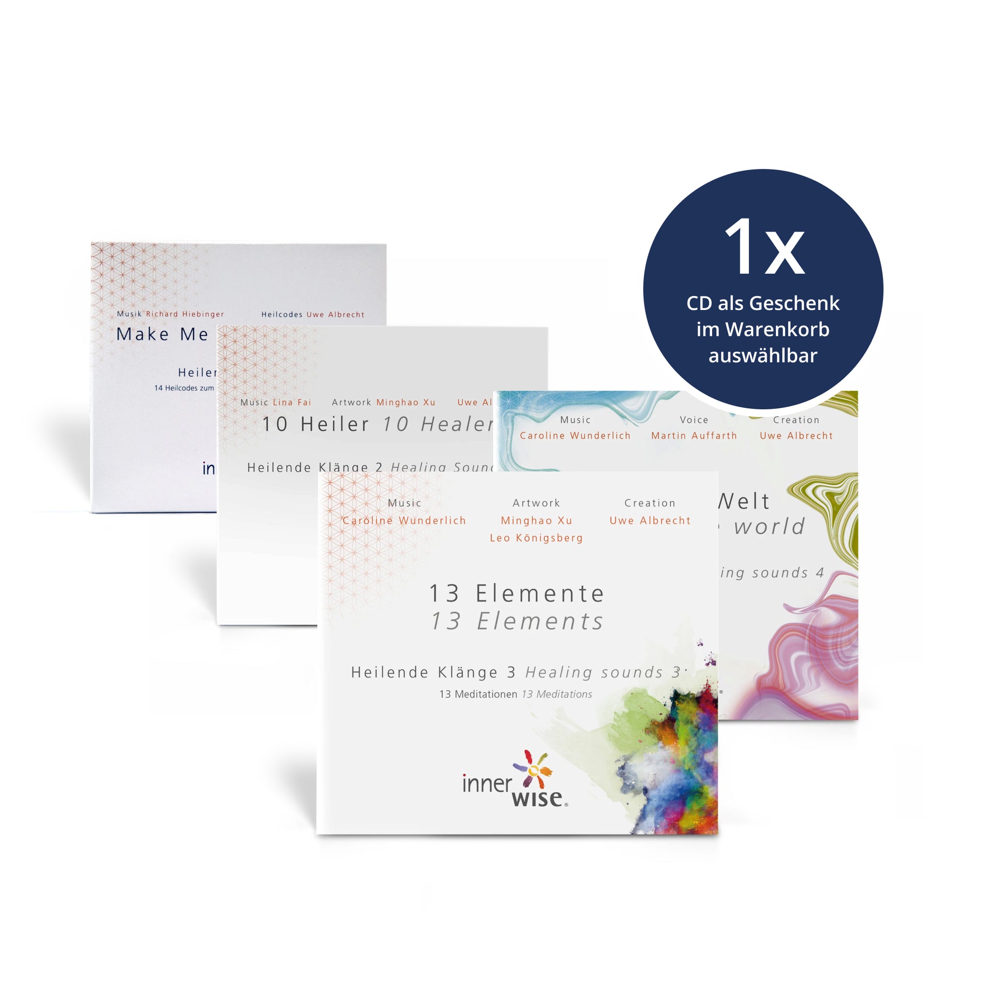 Hinweis: Beim Kauf dieses Pakets kannst du im Warenkorb eine der CDs aus der "Heilende Klänge" Serie kostenlos zu deiner Bestellung hinzufügen. Füge zuerst dieses Paket dem Warenkorb hinzu und scrolle anschließend im Warenkorb nach unten und wähle deine gewünschte CDs aus.